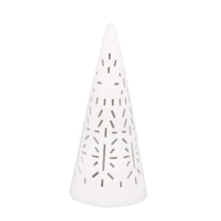 Gli abeti sono l'accessorio perfetto per il tuo villaggio. Una foresta di porcellana bianca come la neve con motivi traforati illumina magicamente la notte buia. Gli abeti dalla forma semplice con splendidi ritagli creano punti luce su tavole, pareti e soffitti.